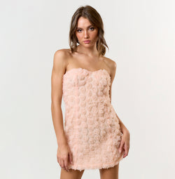 Elegant Blush Strapless Rose Detailed Textured Mini Dress