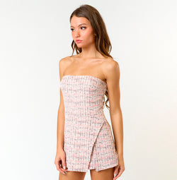 Elegant Strapless Pink Multi-Color Textured Detailed Romper