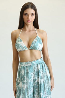 Fashion Sage Tropical Print Silver Detailed Crop Top