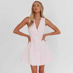 Elegant Pink Texture Detailed Sleeveless Blazer Mini Dress