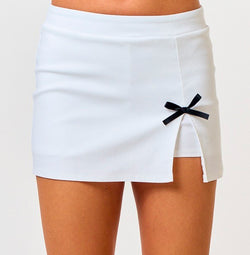 Elevate your wardrobe with this Fashion Ivory Bow Detailed Mini Skort, designed to blend elegance and modern style. The delicate ivory bow adds a refined touch, while the mini length offers a chic, flattering silhouette. Perfect for sophisticated occasions or stylish everyday wear, this skort combines comfort with a polished finish.