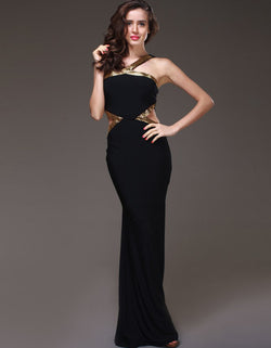 Beaded Gold Neckline Gown