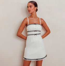 Fashion Strap White Contrast Bow Detailed Mini Dress