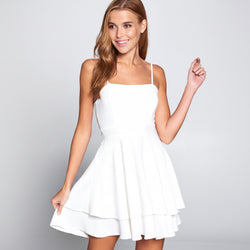 This refined summer mini dress captures understated luxury with its crisp white palette and thoughtfully designed silhouette. Slender shoulder straps frame the neckline while the signature back tie-up creates an alluring focal point with subtle elegance. Layered ruffle detailing adds texture and movement without compromising sophistication. Ideal for warm-weather gatherings, beach outings, or casual evening wear, this piece transitions seamlessly from day to night. A wardrobe essential that balances minimalist design with distinctive style.