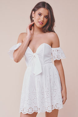 Fashion Summer Off Shoulder Tie-Up Lace White Dress