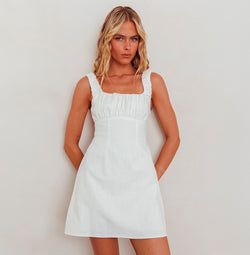 Elevate your summer ensemble with our White Ruffle Corset Dress. Meticulously crafted with delicate straps and feminine ruffle details, this sophisticated piece accentuates your silhouette with its structured corset design. Perfect for garden soirées or evening events, it embodies refined elegance while keeping you cool during warm weather occasions.