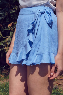 Fashion Summer Blue Ruffle Side Tie-Up Skort