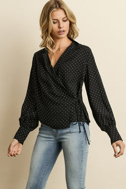 Fashion Black Polka Dot Wrap Tie-Up Blouse
