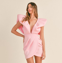Experience effortless elegance with this gorgeous pink mini dress. Featuring a V-neck design, high low hem, and puffy ruffle detailing, this piece will add a perfect touch of sophistication to your wardrobe. Whether you're attending a special event or creating a timeless look, this exquisite dress is essential.