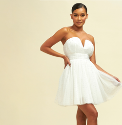 Elegant Strapless White Crystal Detailed Ruffle Dress