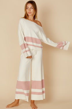 Fashion Casual Ivory Pink Sweater Palazzo Pants