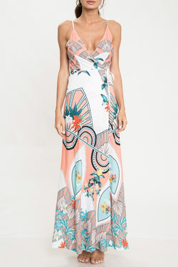 Elegant Summer Multi-Color Floral Print Wrap Maxi Dress