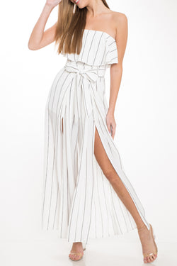 Fashion Strapless Ruffle White Contrast Cut Out Jumpsuit