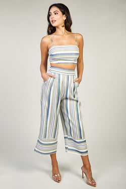 Fashion Summer Blue Multi-Color Striped Strap Top