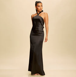 Indulge in sophistication with our Elegant Halter Black Satin Maxi Dress. The halter neckline and open back design exude elegance while the tie-up detail adds a touch of luxury. Made from premium black satin, this dress is the perfect addition to your wardrobe for any upscale event.