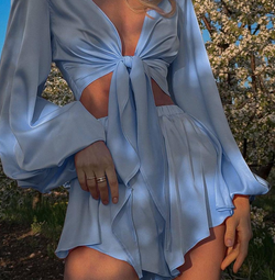 Fashion Blue Satin High Waisted Shorts