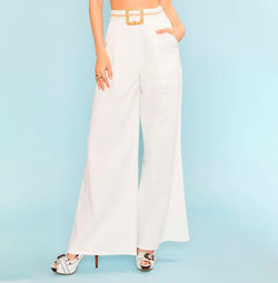 Fashion Summer White Buckle Detailed High Waisted Palazzo Pants