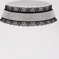 Elegant Choker Black Necklace With Lace And Rhinestones