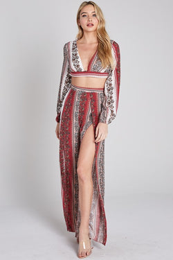 Fashion Summer Floral Print Red Contrast Cut Out Pants