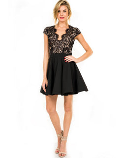 Elegant Black Flare Lace Dress