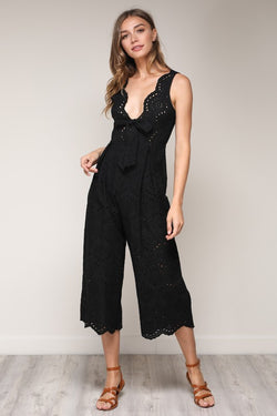 Elegant Black Lace Jumpsuit with Tie-Up Detailed