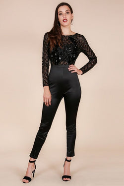 Elegant Black Sequence Open Back Jumpsuit