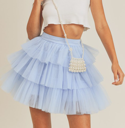 Elegant Blue Layered Ruffle Tulle Mini Skirt