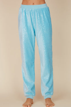 Elegant Blue Sky Sequence Jogger Pants