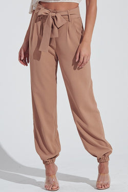 Elegant Camel Tie-Up High Waisted Jogger Pants