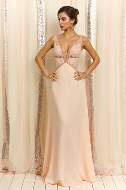 Elegant Cocktail Blush Deep V-Neck Crystal Gown