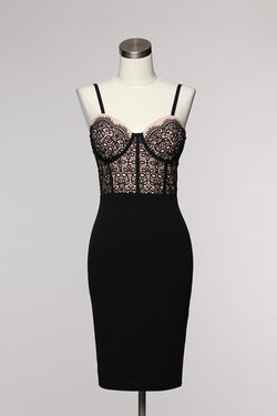 Elegant Contrast Black Beige Lace Dress