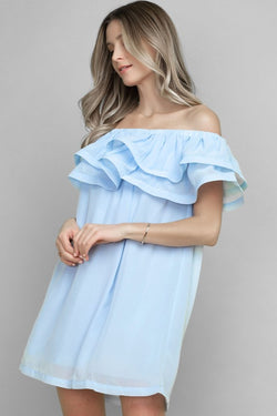 Elegant Light Blue Off Shoulder Ruffle Dress