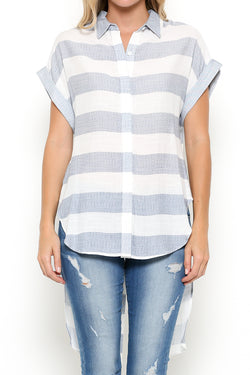 Elegant Marine Button Down Blouse