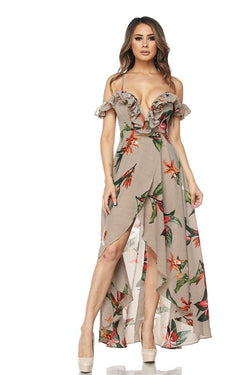 Elegant Mix Pattern Off Shoulder Multi-Color Maxi Dress