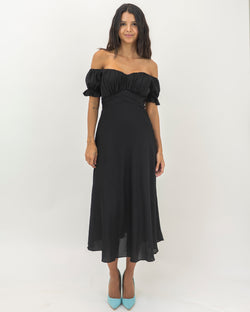 Elegant Off Shoulder Black Satin Tie-Up Ruffle Maxi Dress