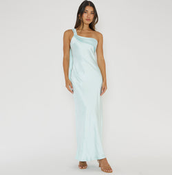 Elegant One Shoulder Ice Satin Ruffle Maxi Dress