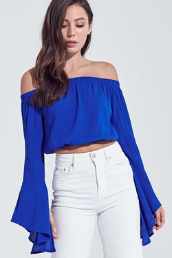 Elegant Royal Blue Off Shoulder Bell Sleeve Top