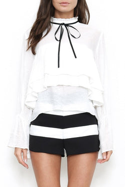 Elegant Ruffle White Long Sleeve Blouse