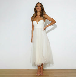 Elegant Strap Butter Tulle Mesh Corset Maxi Dress Back Tie-Up