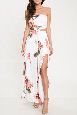 Elegant Strapless Multi-Color Floral Print Tie-Up Top