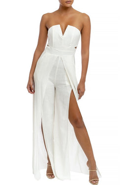 Elegant Summer Strapless Cut Out White Jumpsuit