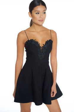 Elegant V Neck Lace Flare Black Dress