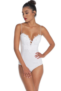 Elegant White Lace V-Neck Bodysuit
