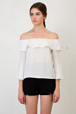 Elegant White Off Shoulder Flare Bell Sleeve Top