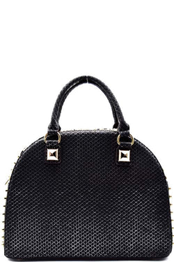 Fashion Animal Print Black Round Stud Embellished Satchel