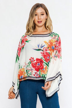 Fashion Ivory Multi-Color Floral Print Bell Sleeve Top