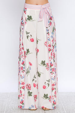 Fashion Multi-Color Floral Print Tie-Up Ecru Palazzo Pants