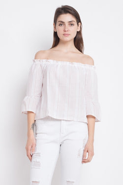 Fashion Off Shoulder Blush Marine Top With Bell Sleeve