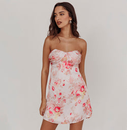 This luxurious strapless dress is the epitome of elegance. Made from high-quality satin, the floral print is a work of art, making you the center of attention at any event. The strapless design adds a touch of sophistication, while the pink hue exudes femininity. Perfect for any fashion-forward woman.