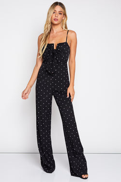 Fashion Strap Polka Dot Tie-Up Black Jumpsuit